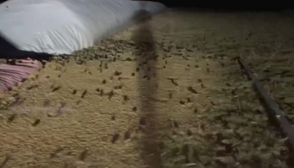 Rekaman mengerikan yang diambil di sebuah peternakan di Kota Gilgandra, berjarak 5 jam berkendara dari Sydney, menunjukkan tikus berlarian di tanah dan berkumpul di bawah pipa.